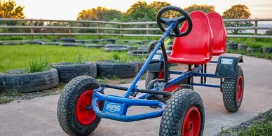 Set up with mini traffic lights, enjoy our smooth pedal go-kart track on one of our berg pedal go-karts!